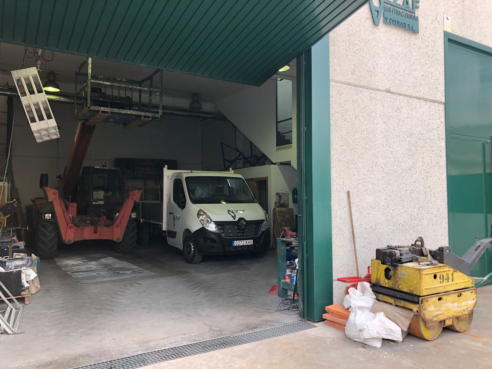 ALZAF dispone de 1.000 m para instalaciones en los que se ubican los edificios de oficina técnica y administrativo. Dentro de esta superficie se incluye naves para almacenaje de material encofrado y maquinaria, además de un taller para la elaboración de ferralla, estructura metálica y reparación de maquinaria de obra.